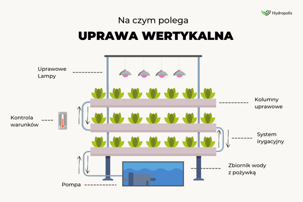 W celu lepszego zrozumienia koncepcji rolnictwa wertykalnego warto wiedzieć na czym polega taki sposób uprawiania roślin. Jest to działalność polegająca na uprawie warzyw, ziół czy owoców na wielu poziomach, wewnątrz budynku lub pod ziemią, często w specjalnie kontrolowanym środowisku. Uprawy wyposażone są w system irygacyjny, który nawadnia i odżywia rośliny. Do produkcji można używać zarówno światła sztucznego, jak i naturalnego.